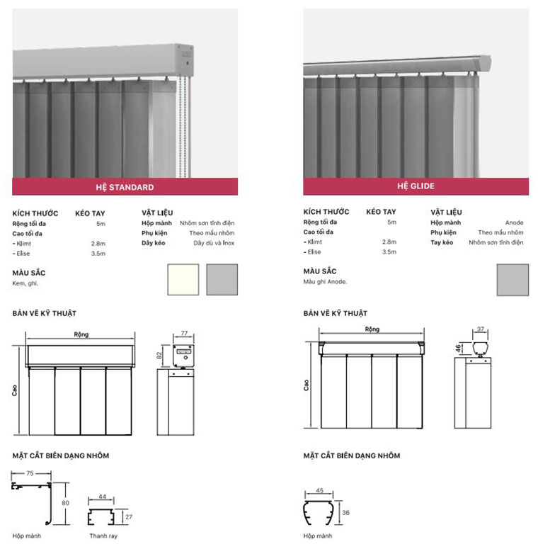 Hệ màu phụ kiện rèm đứng