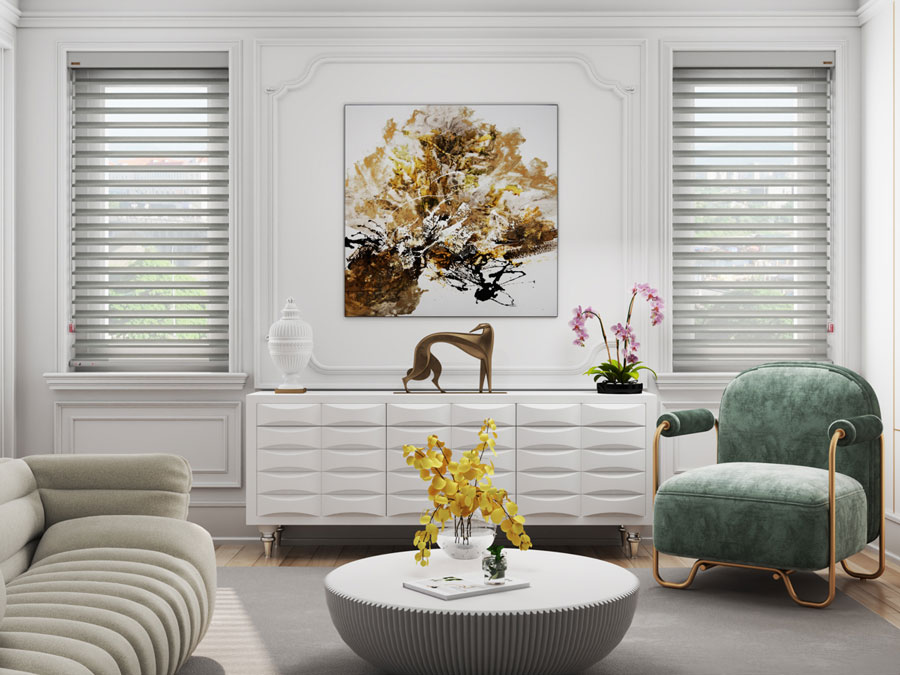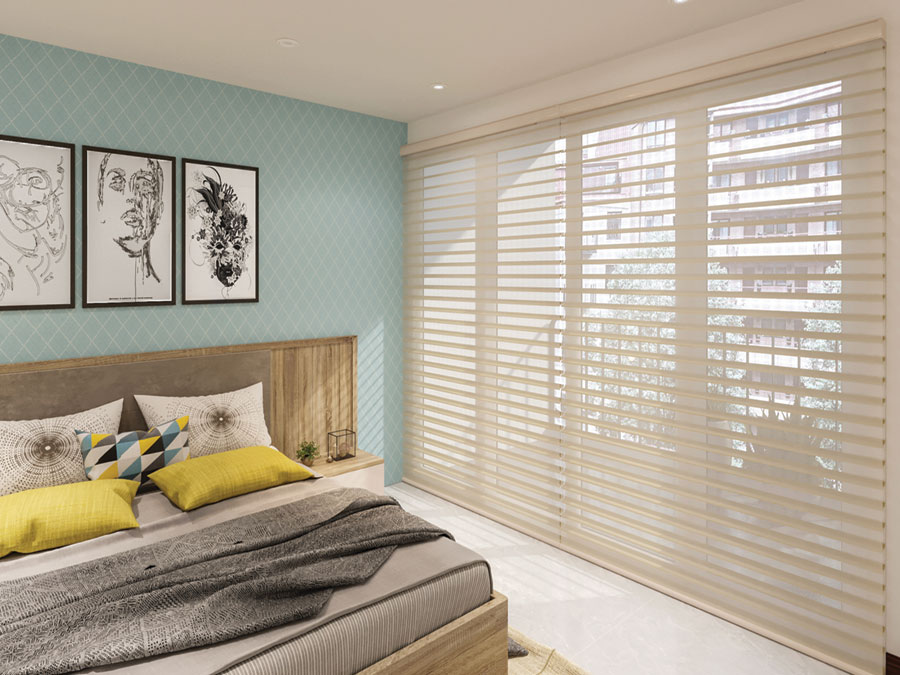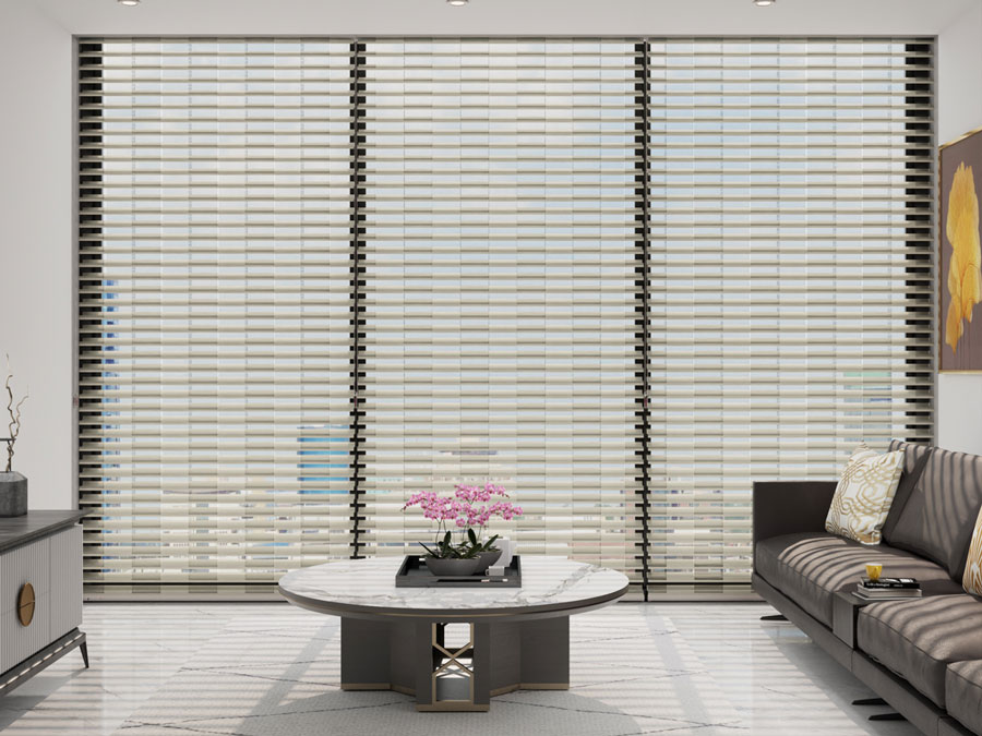 Một sự kết hợp giữa mành Triple và mành sáo ngang (Venetian blinds) mang đến cho One band một kiểu dáng độc đáo, thích hợp với nhiều không gian nội thất từ cổ điển đến hiện đại