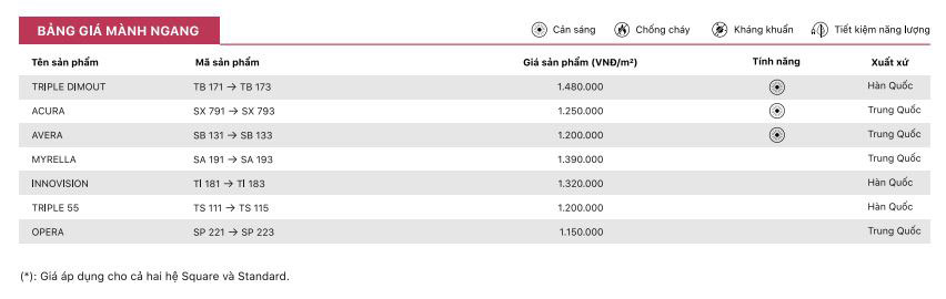 Bảng giá mành ngang
