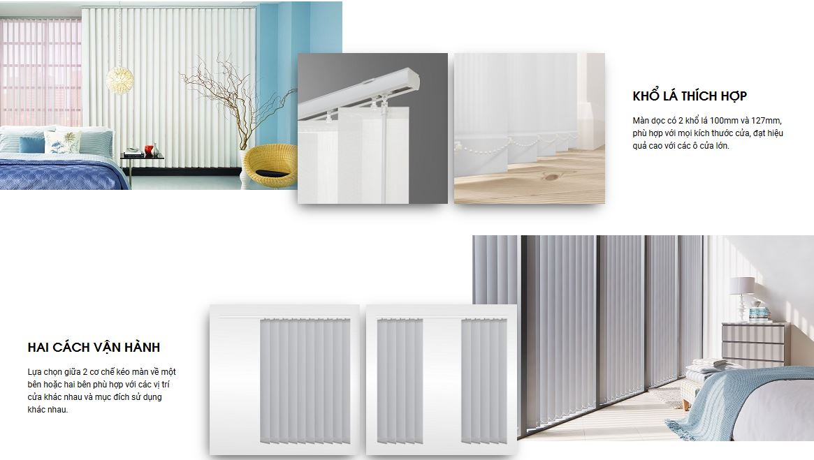 Mành lá dọc được thiết kế hiện đại, dễ sử dụng và có khả năng chống nắng 100%. Rèm sáo lá dọc là 1 loại rèm có khả năng chống nắng, cản nắng và cách nhiệt rất tốt.