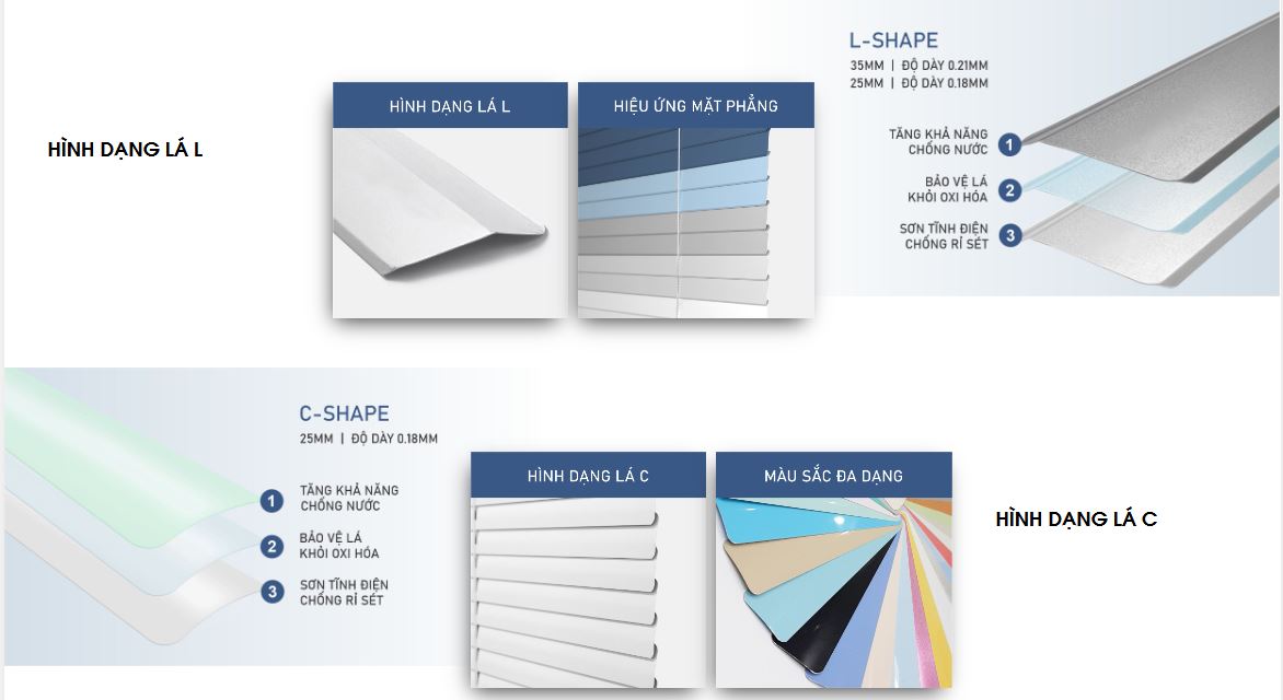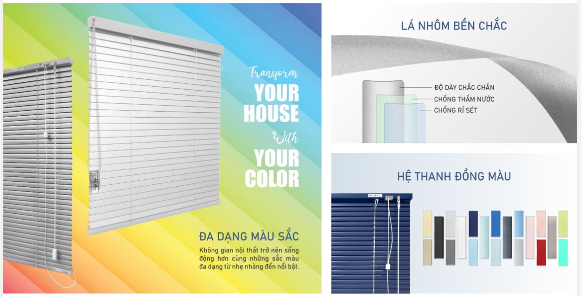 Các mẫu màn sáo nhôm chất lượng cao, màu sắc hiện đại, phù hợp với mọi không gian nội thất đồng thời đạt đầy đủ các tiêu chuẩn đánh giá của một bộ rèm cửa tốt.