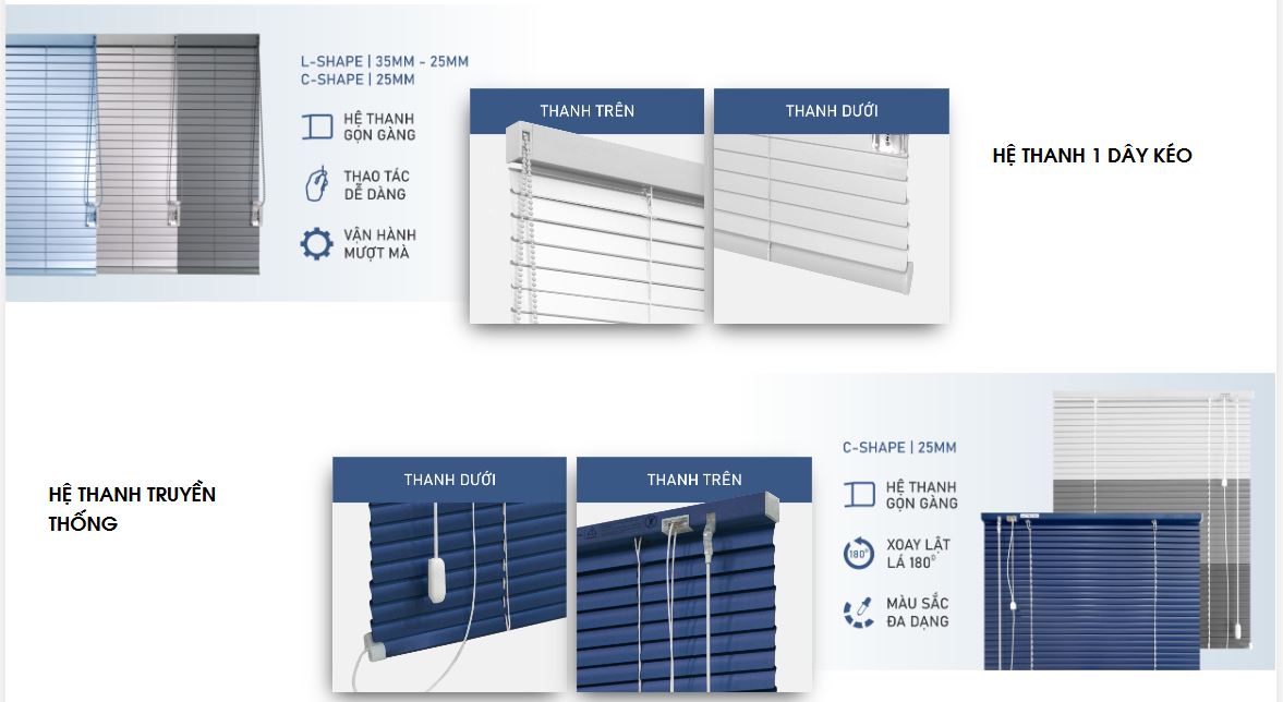 Rèm sáo nhôm có 2 hệ kéo là hệ kéo 1 dây và hệ kéo 2 dây.