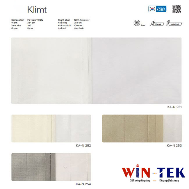Cũng là sự kết hợp giữa rèm vải và mành sáo dọc, nhưng mành đứng Elise, Klimt là một tấm vải liền được dệt 3 lớp – Các lá vải với khổ rộng 41cm được ghép lại tạo thành các sóng vải đẹp mắt và mềm mại. Đây thực sự là một sản phẩm thể hiện khả năng sáng tạo vô cùng của con người. Một sản phẩm thực sự đẳng cấp cho không gian sống hiện đại.