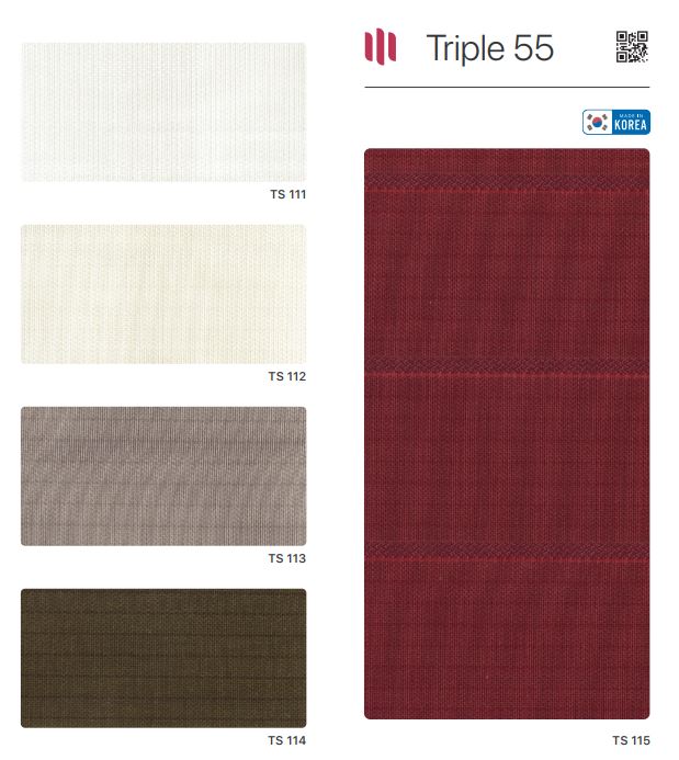 Với 3 lớp vải được liên kết với nhau trên cùng một lớp mành đem lại khả năng điều chỉnh ánh sáng tuyệt vời cũng như sự mềm mại trong thiết kế nội thất. Màu sắc đơn giản, trang nhã, dễ dàng lựa chọn. Mành Triple thực sự là một sản phẩm ấn tượng.