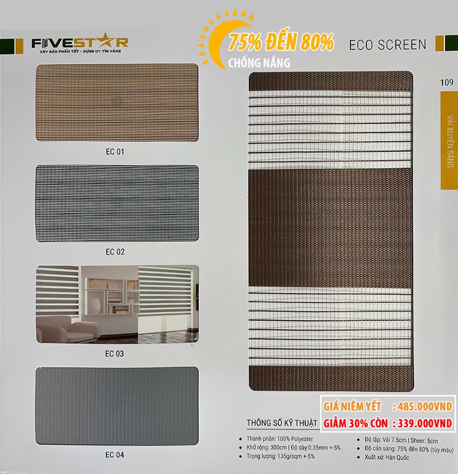 Bảng màu và thông số kỹ thuật rèm cầu vồng FIVESTAR mã Eco