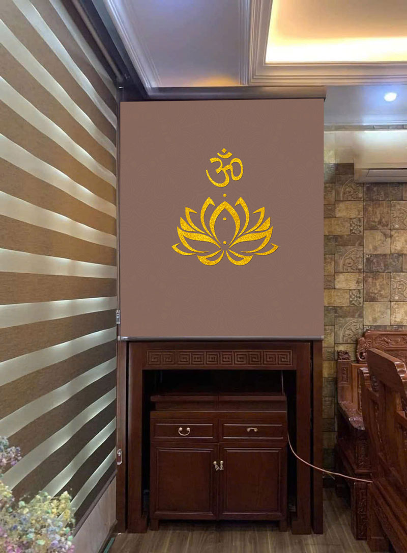 Rèm che bàn thờ đẹp in họa tiết hoa sen -RBT2902
