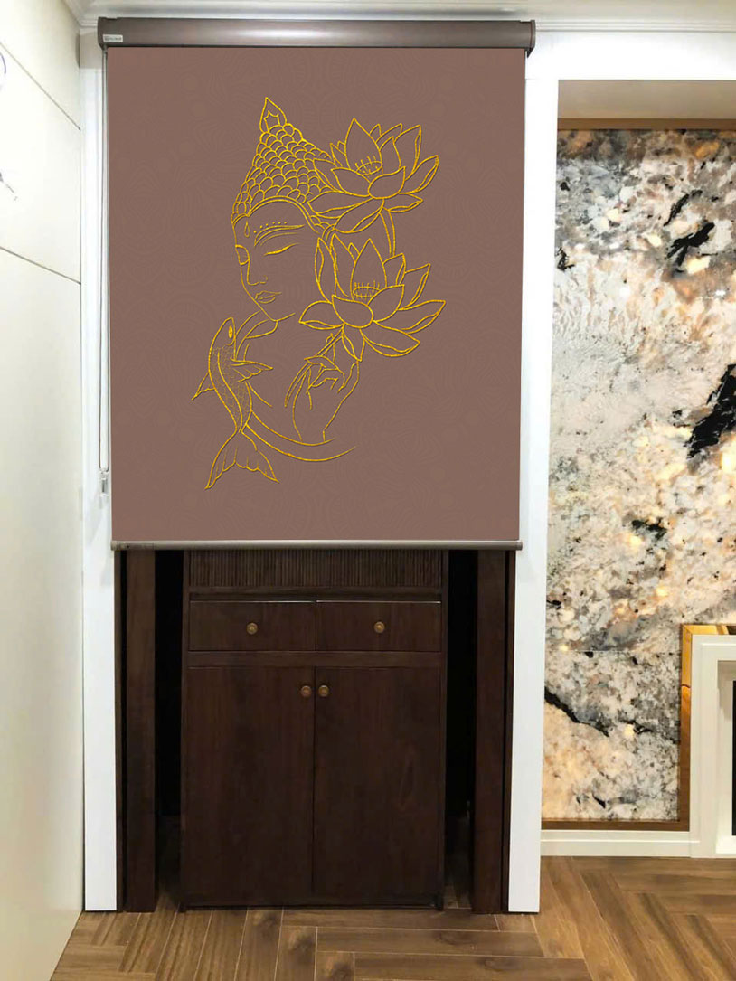 Rèm che bàn thờ đẹp in họa tiết hoa sen -RBT2903