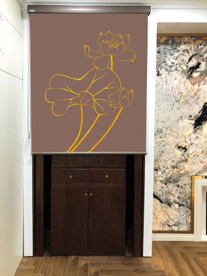 Rèm che bàn thờ đẹp in họa tiết hoa sen -RBT2908
