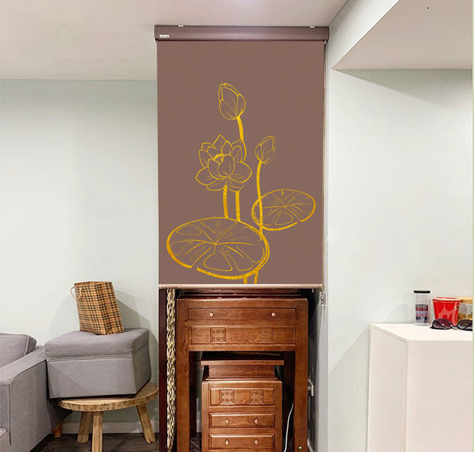 Rèm che bàn thờ đẹp in họa tiết hoa sen -RBT2910