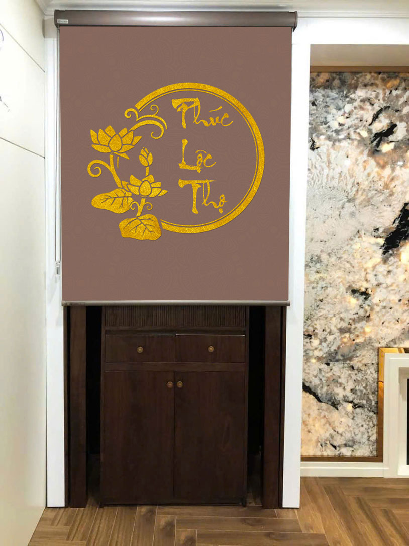 Rèm che bàn thờ đẹp in họa tiết hoa sen -RBT3004