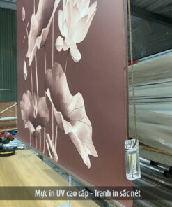 Chất liệu vải rèm cửa in tranh: vải phủ nhựa polyester chuyên dụng trong ngành rèm. Vải chống nắng 100%, chống nước, chống bám bụi, dễ vệ sinh lau chùi.