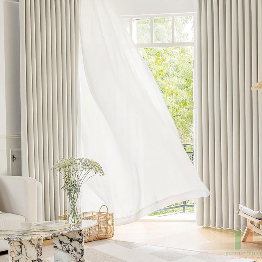 Vải linen (vải lanh) mang nét đẹp tự nhiên, mộc mạc và thoáng mát, rất được ưa chuộng trong phong cách nội thất Bắc Âu hay tối giản. Trong khi đó, vải voan mỏng nhẹ, mềm mại, thường dùng làm lớp rèm phụ để tăng tính thẩm mỹ, giúp lấy ánh sáng tự nhiên và tạo cảm giác nhẹ nhàng, bay bổng cho căn phòng.
