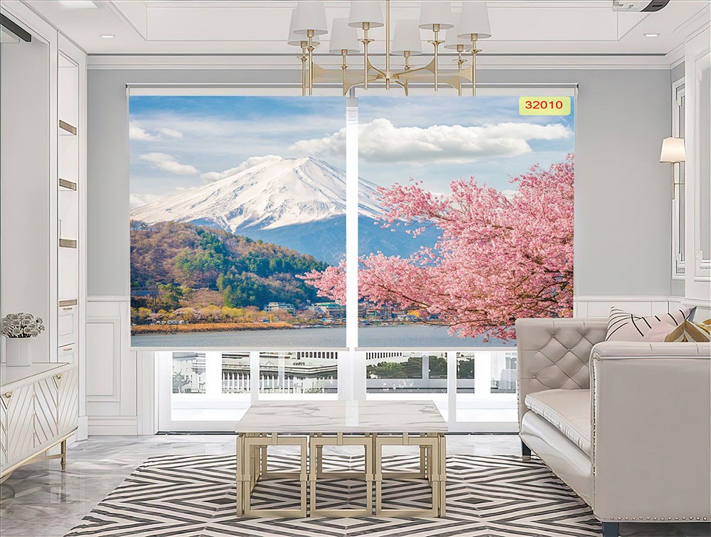 Mẫu rèm cuốn in tranh phong cảnh đẹp cho cửa sổ chung cư