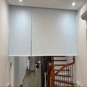 Rèm cuốn lắp ở vị trí cầu thang để ngăn phòng, tránh thất thoát nhiệt khi bật điều hòa. Khi không dùng thì kéo lên
