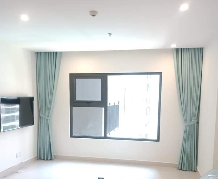 Rèm vải 1 lớp màu xanh đẹp cho phòng ngủ chung cư mã WRV19