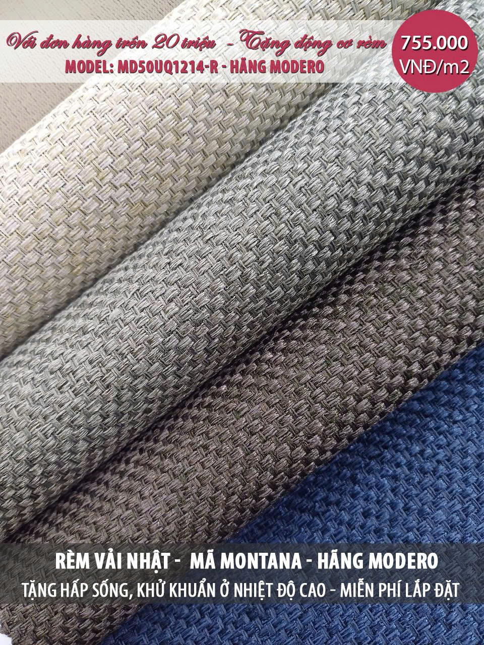 | Rèm vải Nhật Bản mã Montana (May hoàn thiện theo tiêu chuẩn của hãng) | 755.000 |