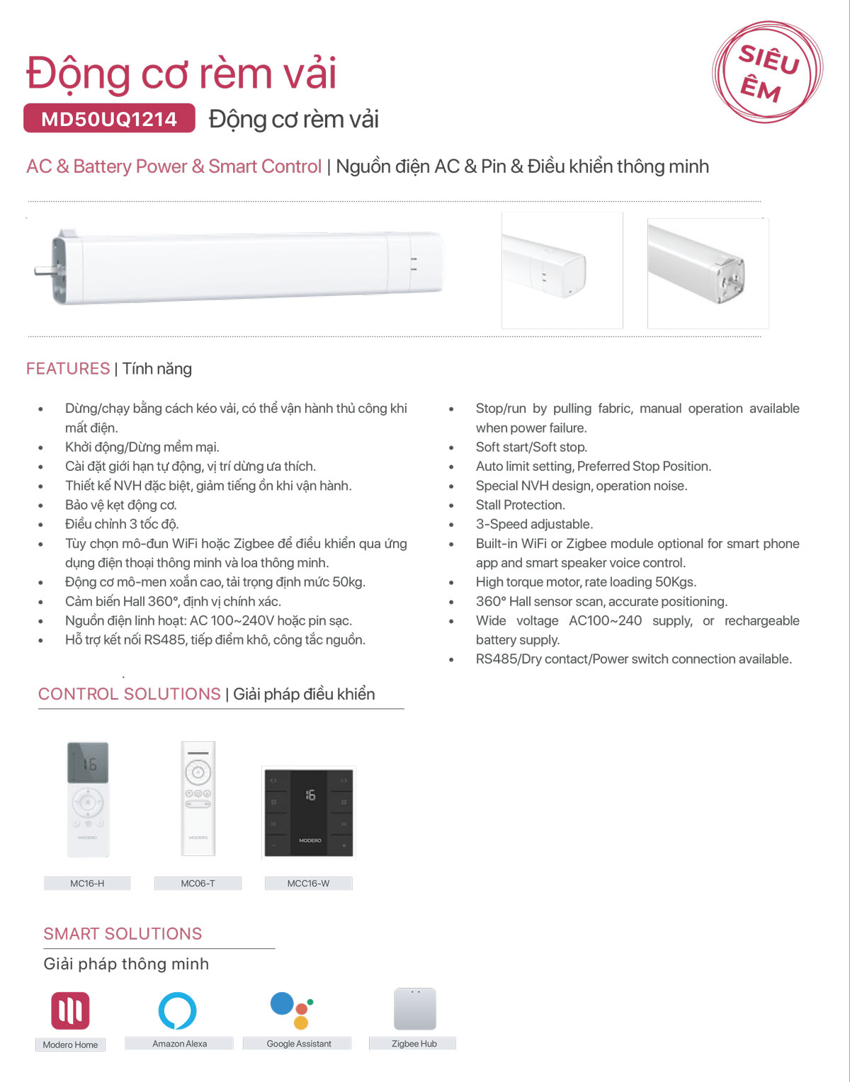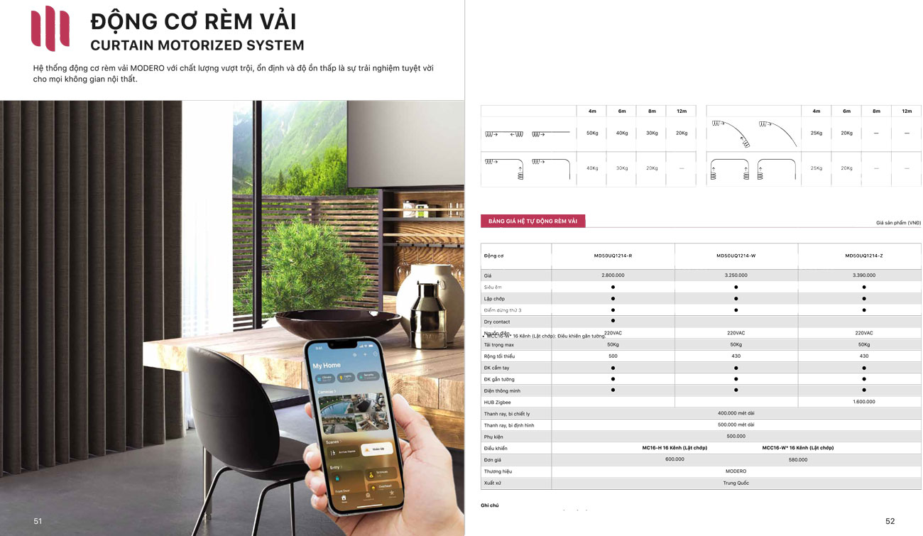 Báo giá Rèm vải tự động Nhật Bản Mã Vivian | Động cơ rèm Modero mã MD50UQ1214-R