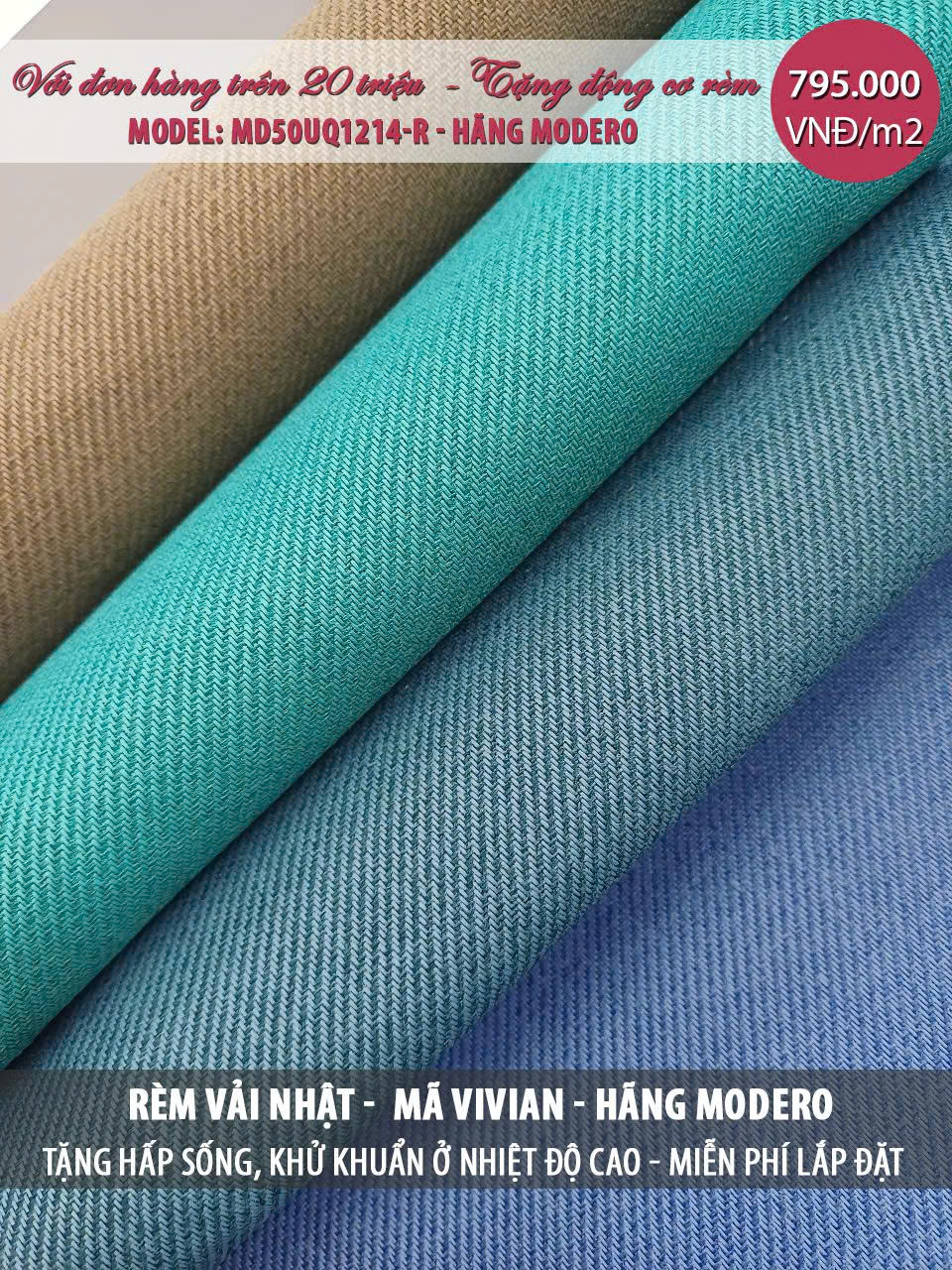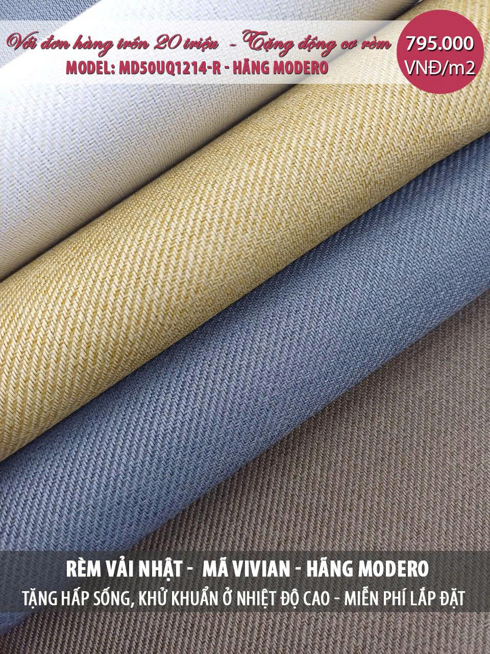 | Rèm vải Nhật Bản mã Vivian (May hoàn thiện theo tiêu chuẩn của hãng) | 795.000 |