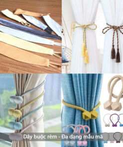 Dây buộc rèm là phụ kiện vừa có chức năng cố định, vừa là điểm nhấn trang trí. Hiện nay có nhiều kiểu dây buộc như dây vải đồng màu, dây thừng vintage, dây tua sang trọng phù hợp với từng phong cách nội thất. Đầu chụp thanh rèm thường được thiết kế cầu kỳ, nhiều hình dáng (tròn, lá, hoa, pha lê…) giúp tăng tính thẩm mỹ và tạo sự đồng bộ cho bộ rèm.