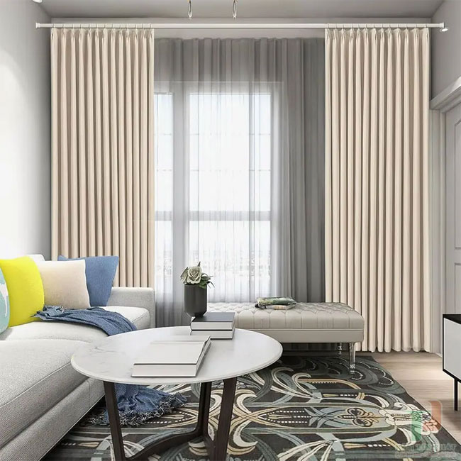 Cách may rèm chiết ly khiến bộ rèm trông nhẹ nhàng. Đây là cách lắp phổ biến áp dụng cho lớp vải voan